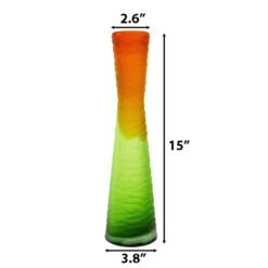 Carved Orange And Green Color Vintage Style Glass Vase H-11″ D-2.75″ (Wholesale 6 Pcs Per Case)