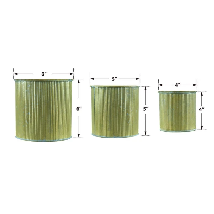 The set of 3 corrugated metal planter pot cylinders provides a warming accent to its surrounding environment. The perfect piece for modern home decor that allows easy and practical decoration for the contemporary home. It makes for a unique centerpiece for any event or home.