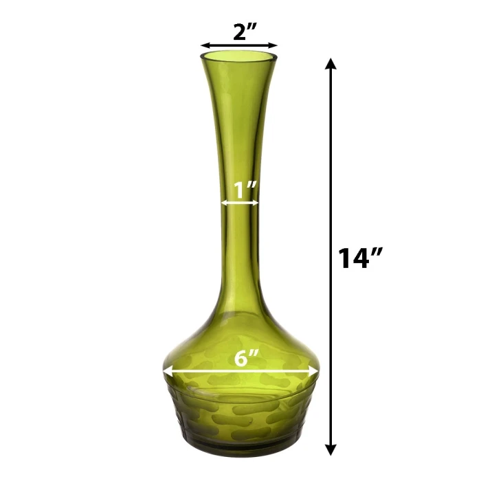 Decorative Olive Green Glass Vase 14.5″ (Wholesale 6 Pcs Per Case)