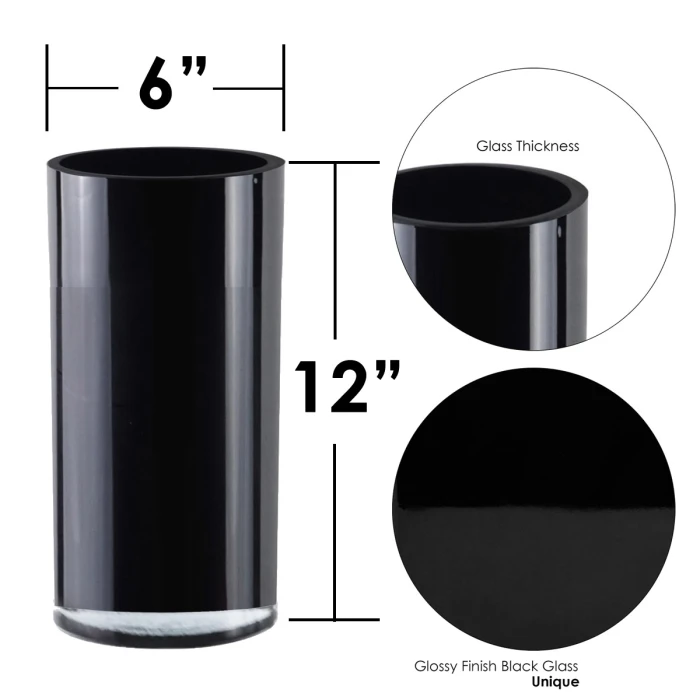 Cylinder black vases are great for floral or floating candle arrangements, arts and crafts, or candle making. They make excellent centerpieces for parties and are wonderful home decor pieces. They are ideal for weddings, anniversaries, and all kinds of special occasions, especially when fresh bouquets are called for. These vases are dishwasher safe. Flowers and other accessories are not included.