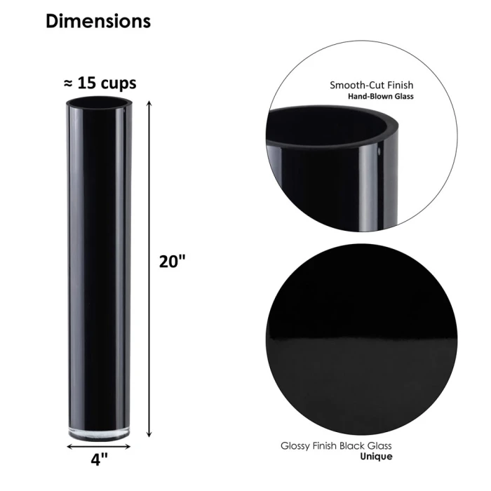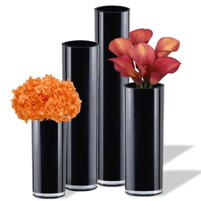 Cylinder black vases are great for floral or floating candle arrangements, arts and crafts, or candle making. They make excellent centerpieces for parties and are wonderful home decor pieces. They are ideal for weddings, anniversaries, and all kinds of special occasions, especially when fresh bouquets are called for. These vases are dishwasher safe. Flowers and other accessories are not included.
