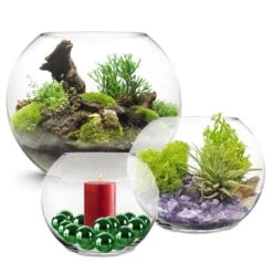 Glass bubble bowls are a unique style of vase that is great for modern decorating. As the name suggests, the glass curves into a bubble-like sphere with an opening at the top. You can brighten up any room by filling the bowls with colorful vase fillers, fresh flowers, or a simple terrarium. The encompassing glass makes an elegant and simple look for floating candles.