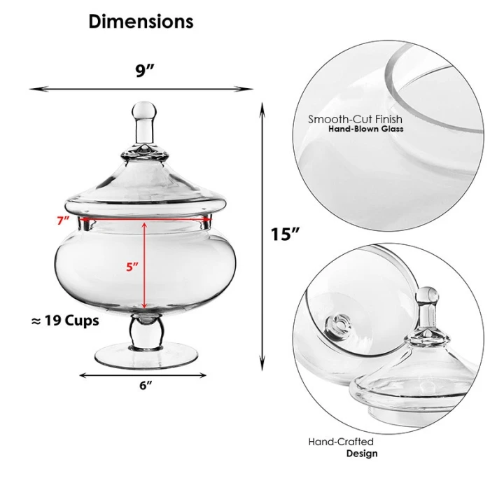 Uses – Apothecary jars are versatile. Not only can they be used as storage containers but also look great with petals, water, sand, pine cones, maples leaves, or flowers to add jubilant energy flows into your environment.