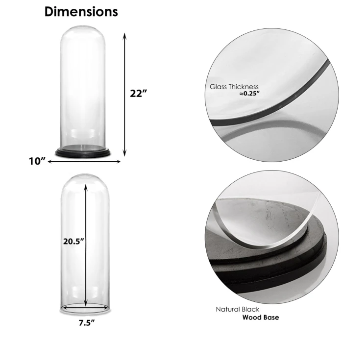 Originally created to protect seedlings or delicate flowers from adverse elements, these glass domes can also be plant terrarium containers or dessert display covers! This clear glass cloche is the perfect choice to pair with different types of cake stands or trays. More and more wedding centerpieces are seen using cloche covers as part of the table setting decor. It is a practical way to keep dust from falling on candles and a gorgeous decorative object on it own.