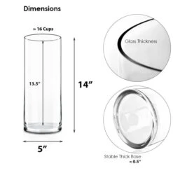 Cylinder vases are great for floral or floating candle arrangements, arts and crafts, or candle making. They make excellent centerpieces for parties and are wonderful home decor pieces. They are ideal for weddings, anniversaries, and all kinds of special occasions, especially when fresh bouquets are called for. These vases are dishwasher safe. Flowers and other accessories are not included.