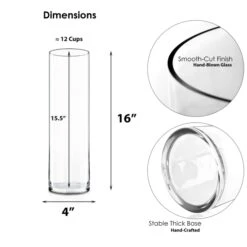 Cylinder vases are great for floral or floating candle arrangements, arts and crafts, or candle making. They make excellent centerpieces for parties and are wonderful home decor pieces. They are ideal for weddings, anniversaries, and all kinds of special occasions, especially when fresh bouquets are called for. These vases are dishwasher safe. Flowers and other accessories are not included.