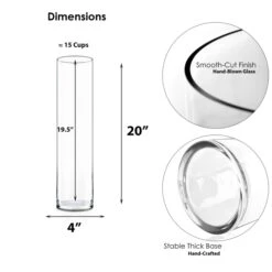 Cylinder vases are great for floral or floating candle arrangements, arts and crafts, or candle making. They make excellent centerpieces for parties and are wonderful home decor pieces. They are ideal for weddings, anniversaries, and all kinds of special occasions, especially when fresh bouquets are called for. These vases are dishwasher safe. Flowers and other accessories are not included.