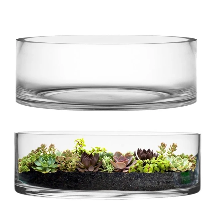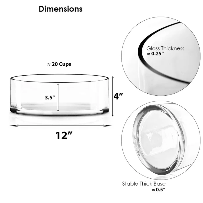 Glass Cylinder Vase, H-4″ D-12″ (Wholesale 4 PCS/Case)