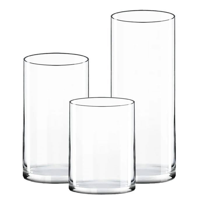 Glass Cylinder Vase Set Of 3, D-6″ X H-8″, 12″, 16″ (4 Sets – 12 Vases)