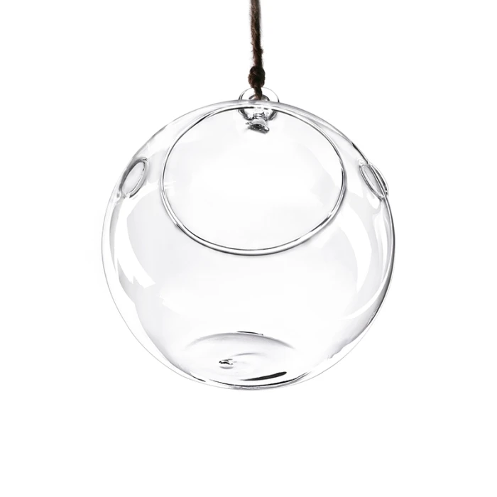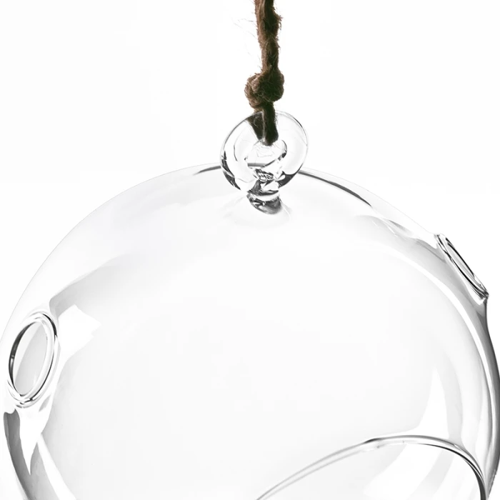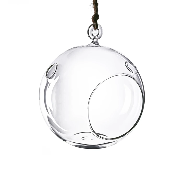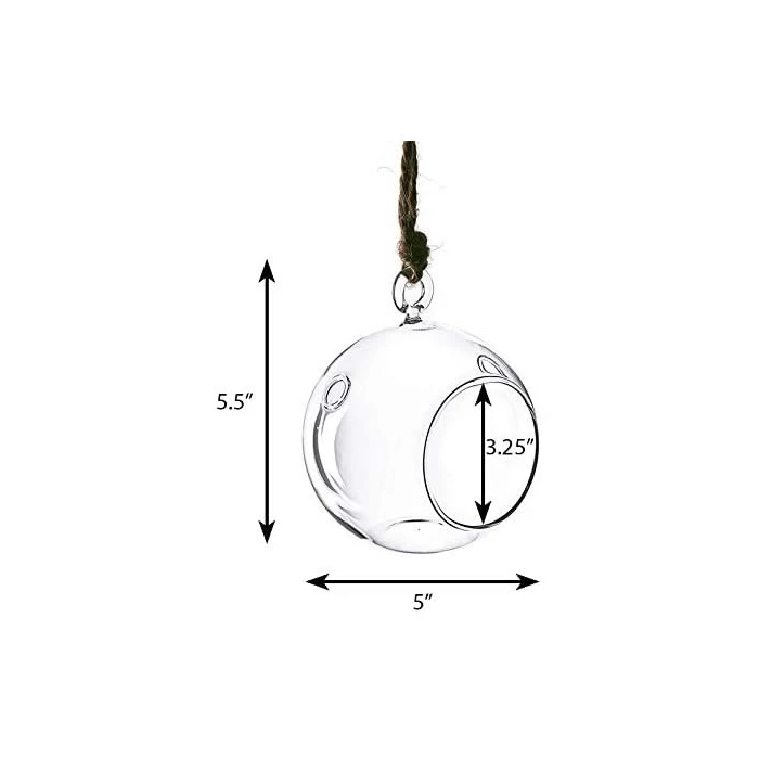 This beautiful glass tealight candle holder can anchor any outdoor or indoor event. Each glass orb comes with two small openings on its top for better air circulation. Suitable for creating your own special glass terrarium or insert flickering tea lights for a magical setting. Versatile in display, these glass holders can be hung using the glass ring or accessible to set on a tabletop with its flat bottom.