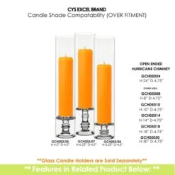 Our elegant open-ended glass hurricane shades are easy to place over candles and easy to remove, while still providing protection for open flames. The contemporary design of the hurricane candle holder gives an impressive display in your home and special events. It’s an astonishing bottomless cylindrical shield to cover votive and short pillar candles for open flame candles. No more dripping wax onto the side of the glass.