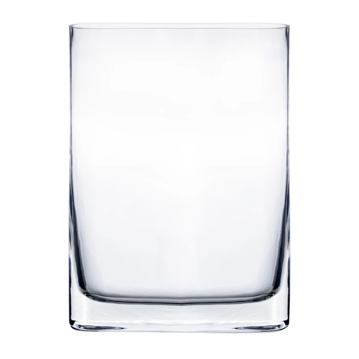 Glass Round Edge Rectangular Vase H-10″ X W-1.75″ X L-7″ Clear (Wholesale Pack Of 6)