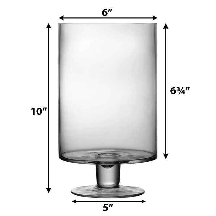 This large contemporary candle holder is perfect for modern home decor. This handcrafted hurricane short stem glass is a classic look with a straight-sided silhouette on a short pedestal base. For the best look, group several together in all shapes and sizes to make a dramatic statement for any décor style.