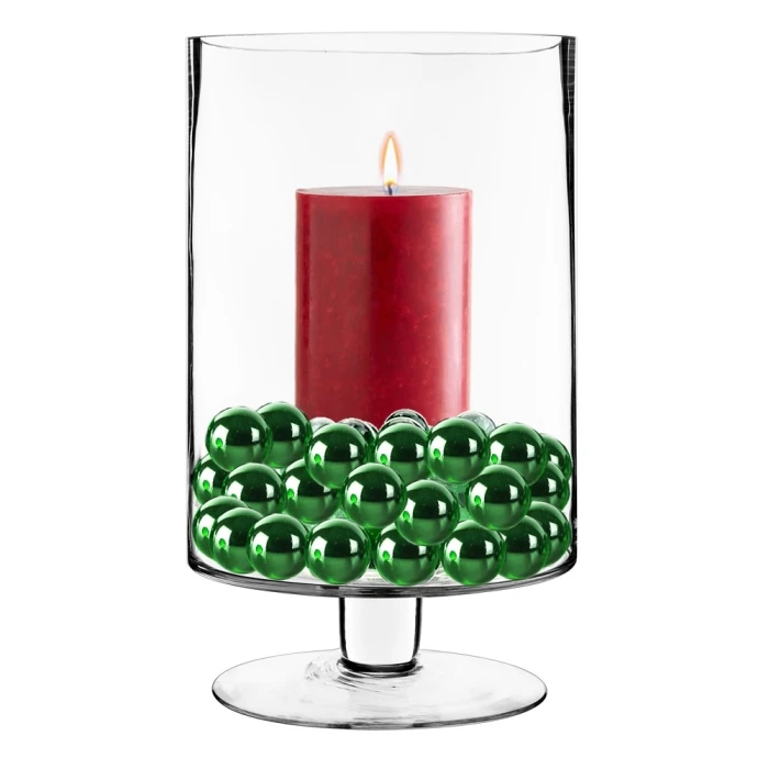 This large contemporary candle holder is perfect for modern home decor. This handcrafted hurricane short stem glass is a classic look with a straight-sided silhouette on a short pedestal base. For the best look, group several together in all shapes and sizes to make a dramatic statement for any décor style.