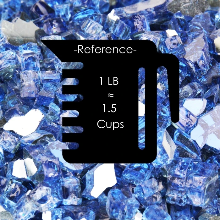 Light Blue Reflective Fire Pit Glass, 1/2″ (Wholesale 40 LBS/Case)