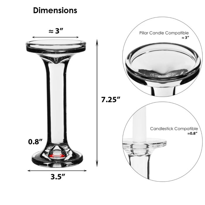 Modern Glass Dual Use Pillar Taper Candle Holder, H-7.25″ W-3″ (Wholesale 12 PCS/Case)