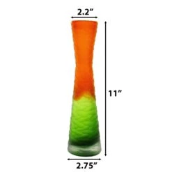 Carved Orange And Green Color Vintage Style Glass Vase H-11″ D-2.75″ (Wholesale 6 Pcs Per Case)