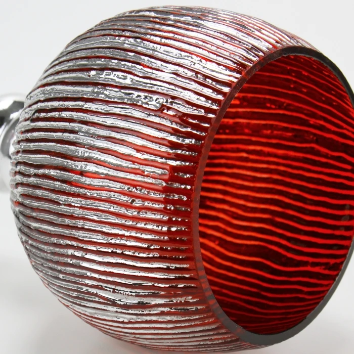 Purpose: Glam up any dull space with its sparkling metallic mercury red glass finish.