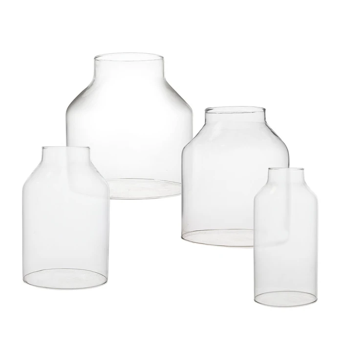 Add a touch of elegance with our almost milk shaped open ended glass hurricane to your candle display. This features a simplisctic form to place over candles and easy to remove, while still providing protection for open flames. The contemporary design of the hurricane candle holder gives an impressive display in your home and special events. It’s an astonishing bottomless shield to cover votive and pillar candles for open flame candles. No more dripping wax onto the side of the glass.
